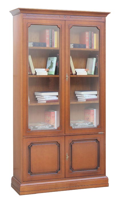 Attention: les étagères fournies en dotation pour l'espace avec portes vitrées sont trois. La niche fermée par les portes en bas est très vaste et, avec une hauteur intérieure utile de 47 cm, elle ne prévoit l'installation d'aucune étagère.