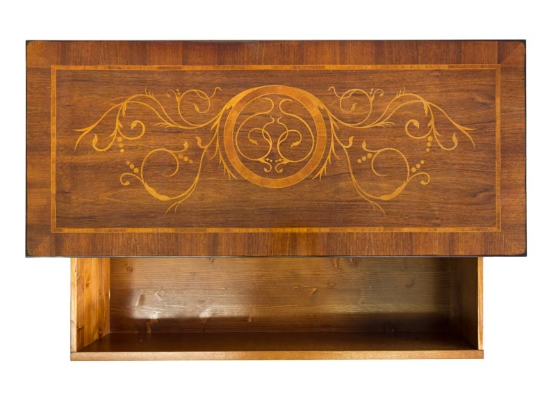 La qualité des matériaux utilisés ainsi qu'un vernissage très soigné rendent cette table de chevet vraiment unique.