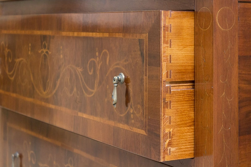 Les 4 tiroirs (1 tiroir secret sur le cadre du plateau) sont vastes et fonctionnels, et ils mettent en évidence l'aspect esthétique du meuble même.