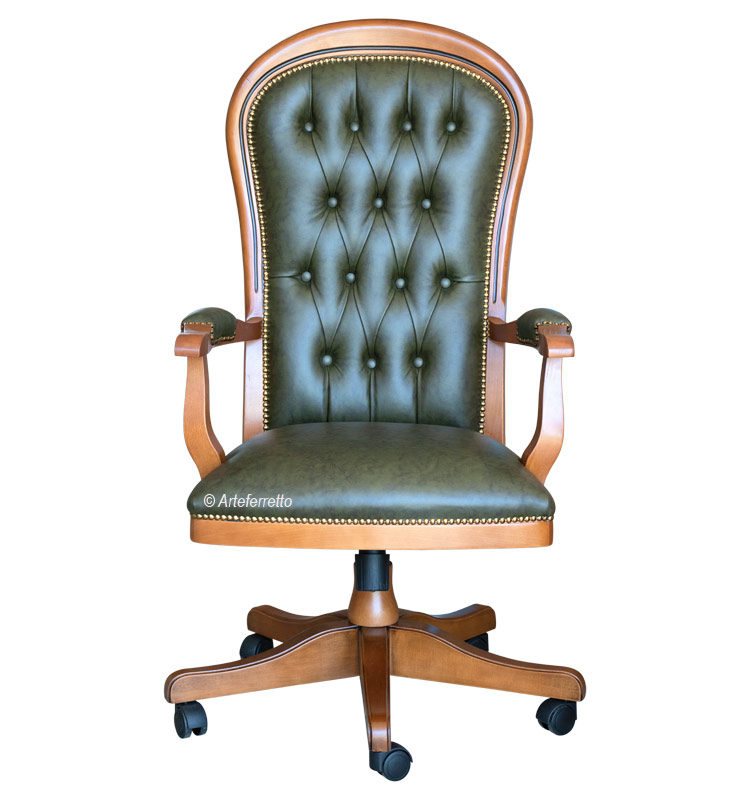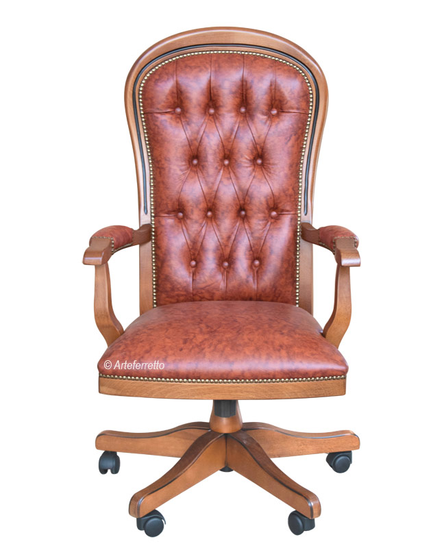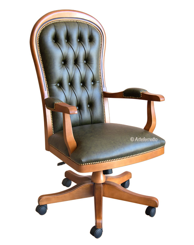Fauteuil de bureau pivotant raffiné avec structure réalisée en massif de hêtre de haute qualité.