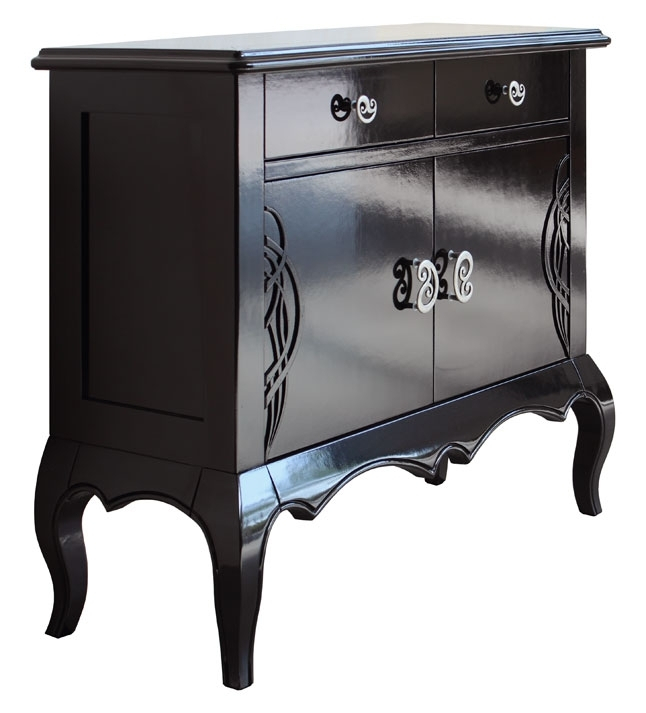 Meuble buffet 100 cm qui présenté des formes essentielles mais avec des détails de style classique, comme les pieds galbés et les frises sur les façades des portes, qui rendent ce meuble très raffiné.