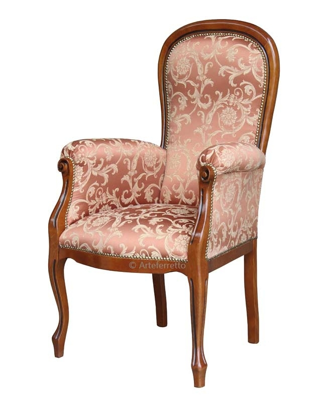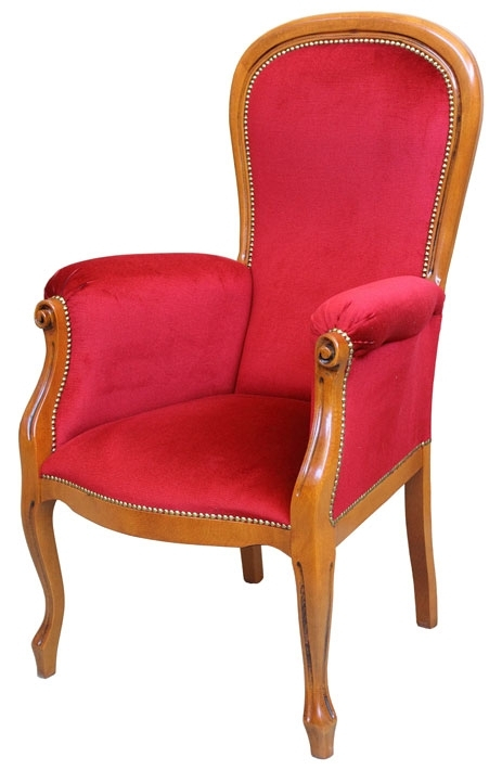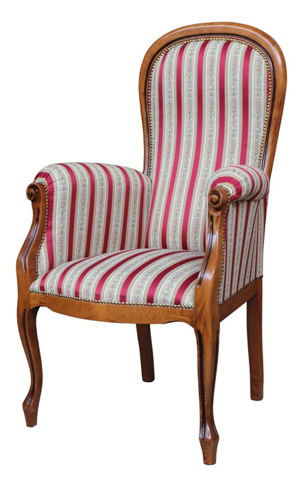 Fauteuil classique bois et vrai cuir capitonné