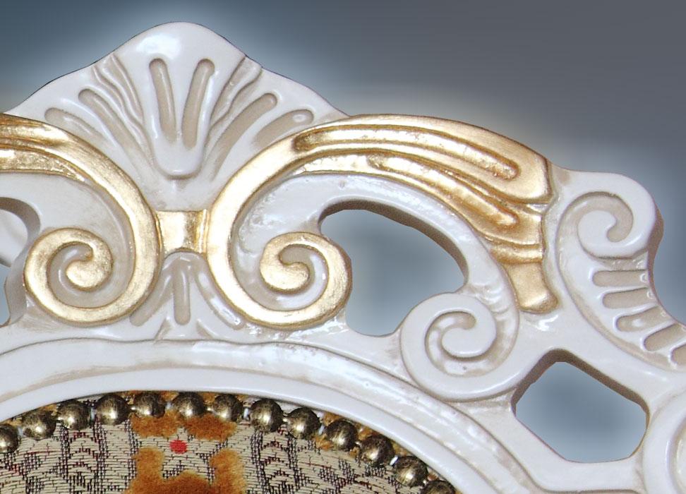Chais bout de table laquée blanc se caractérisant par un dossier agréablement sculpté.