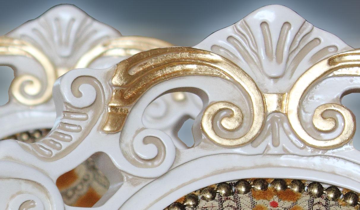 La belle finition lumineuse se marie très bien avec le tissu et le détails dorés de la structure.