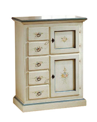 Buffet vaisselier 3 portes pour la cuisine ou la salle à manger.Les deux éléments, buffet et vitrine, se fondent parfaitement en un meuble unique avec des proportions tout à fait parfaites.Un élément d'ameublement beau et complet, d'un style rétro incomparable.Une réalisation magnifique en bois massif de peuplier, finition ivoire plus vieilli que le standard (couche de patine plus lourde) avec détails coloris ocre et décorations exécutés à la main, pour un particulier effet vieilli.Dimensions vitrine:largeur 156 cmprofondeur 41 cmhauteur 119 cmDimensions buffet:largeur 160 cmprofondeur 50 cmhauteur 102 cm