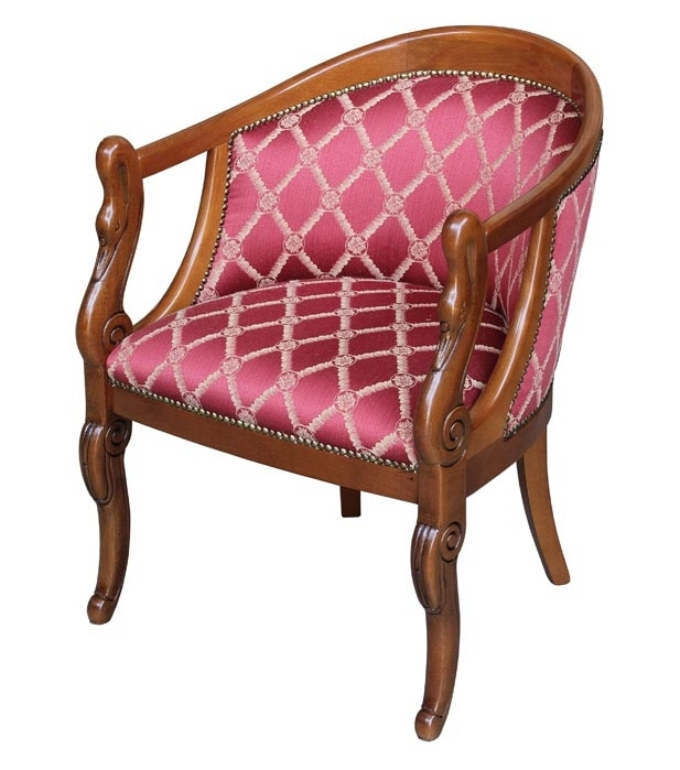 Un splendide petit fauteuil à cols de cygne soigneusement rembourré, très classique.