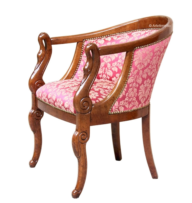 Caractérisé fortement par la gravure en forme de cygne sur le devant des accoudoirs.
