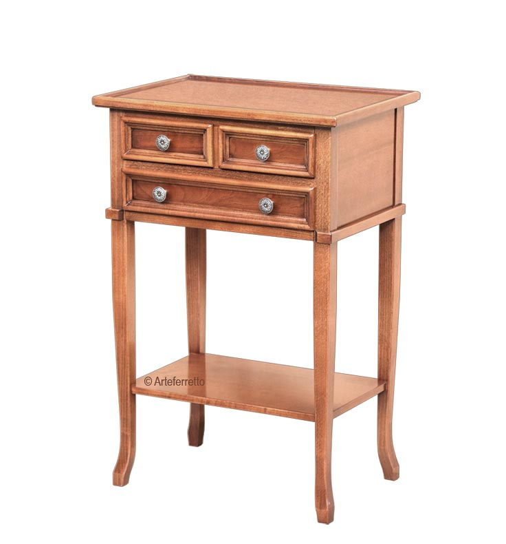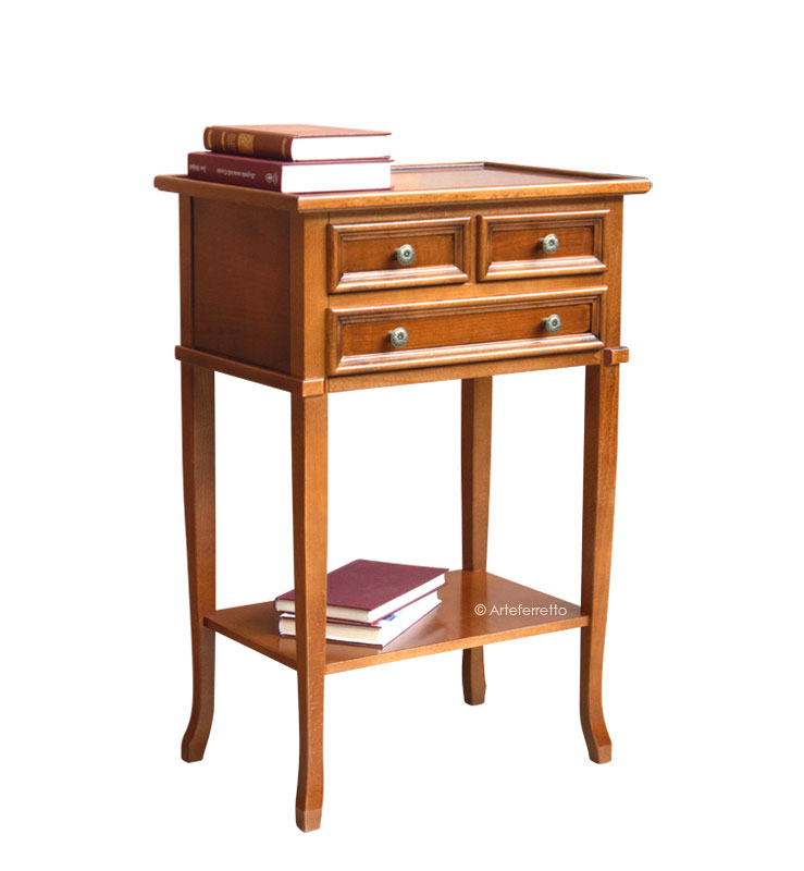 Petit meuble d'appoint téléphone 3 tiroirs avec des lignes simples et élégantes, très utile aussi pour le rangement des petits objets nécessaires dans une pièce d'entrée ou un couloir.
