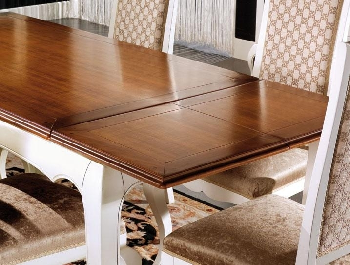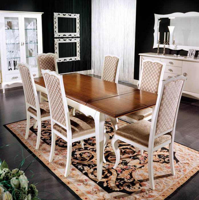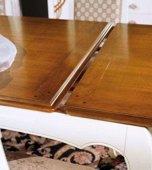 Table rectangulaire à rallonges, caractérisée par un style délicat et typiquement classique.