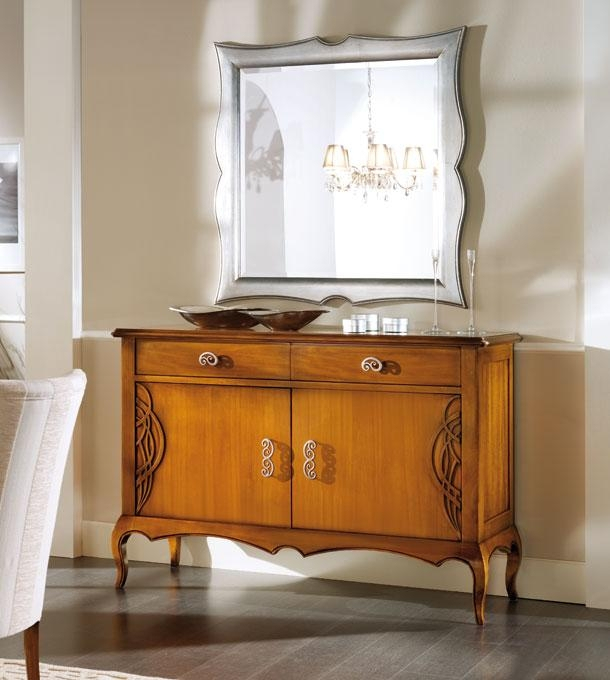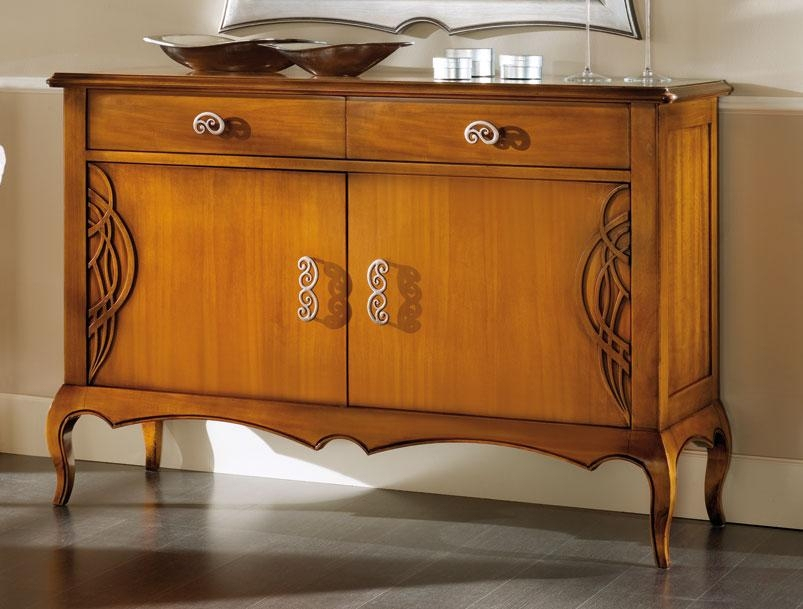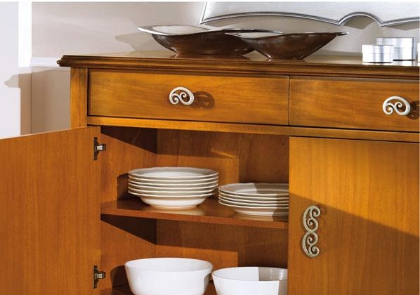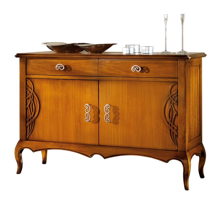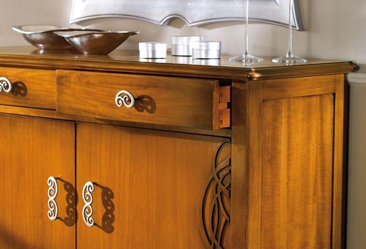 Buffet classique raffiné, de très bonne facture, dont la structure simple et épurée est enrichie par des frises sur la partie frontale qui rappelle la formes des poignées.