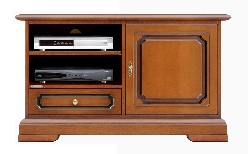 Une touche de style classique avec cet élégant meuble TV de taille moyenne conçu en bois massif de toulipier et panneau MDF plaqués bois naturel de noyer tanganika.
