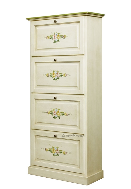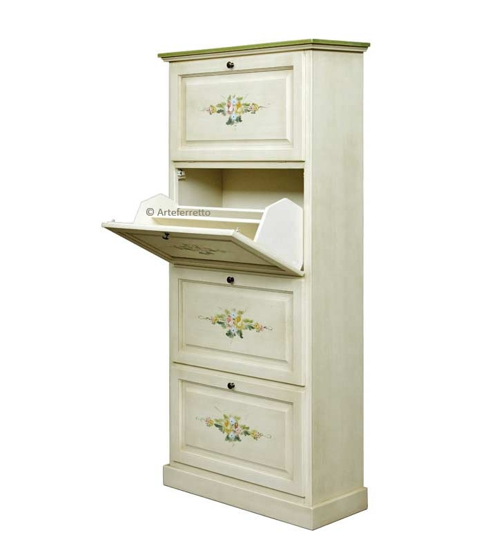 Meuble à chaussures 4 abattants décoré