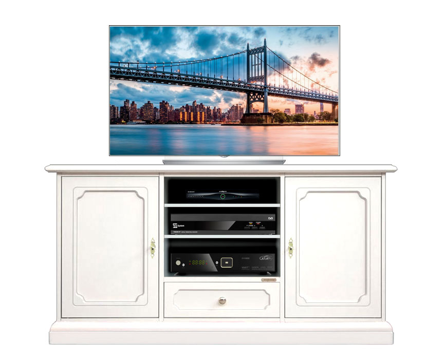 Meuble Tv Lcd en bois, Ameublement pour salon, Banc Tv 2 mètres largeurMeuble Tv Lcd en bois splendide et vraiment très solide, la base idéale pour un salon qui offre le maximum de la fonctionnalité à l'intérieur d'une structure très compacte.Portes et tiroirs, caractérisés par un aspect très élégant et d'une classicité sobre, permettent de ranger en ordre et à l'abri de la poussière différentes typologies d'objets liés à l'utilisation du téléviseur mais pas seulement.L'espace disponible à l'intérieur des niches centrales ouvertes, peut être utilisé et optimisé au mieux grâce aux étagères réglables et amovibles fournies en dotation, avec la possibilité de réunir les câbles à l'intérieur des trous prévus à l'arrière du meuble.Sa forme simple et essentielle le rend un meuble de style qui ne démodera jamais.Dimensions totales:largeur cm 201; hauteur cm 63,5; profondeur cm 40;Dimensions intérieures des niches centrales: largeur cm 46,3; hauteur cm 31; profondeur cm 36;Dimensions de l'espace à l'intérieur des portes: largeur cm 46,3; hauteur cm 50; profondeur cm 36;Dimensions intérieures des tiroirs: largeur cm 43,5; hauteur cm 11,5; profondeur cm 32,5;
