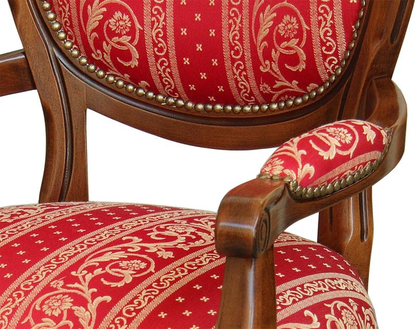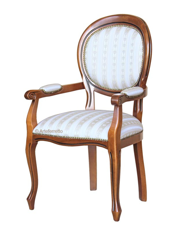 Chaise bout de table de style avec accoudoirs. Une chaise au plusieurs utilisations qui saura en tout cas garantir solidité et fiabilité, qu'elle soit utilisé comme chaise de repas dans une salle à manger ou comme chaise d'accueil dans un bureau raffiné. En effet la structure est entièrement en bois massif de hêtre, le tissu hautement résistant et le rembourrage réalisé avec matériaux de qualité.