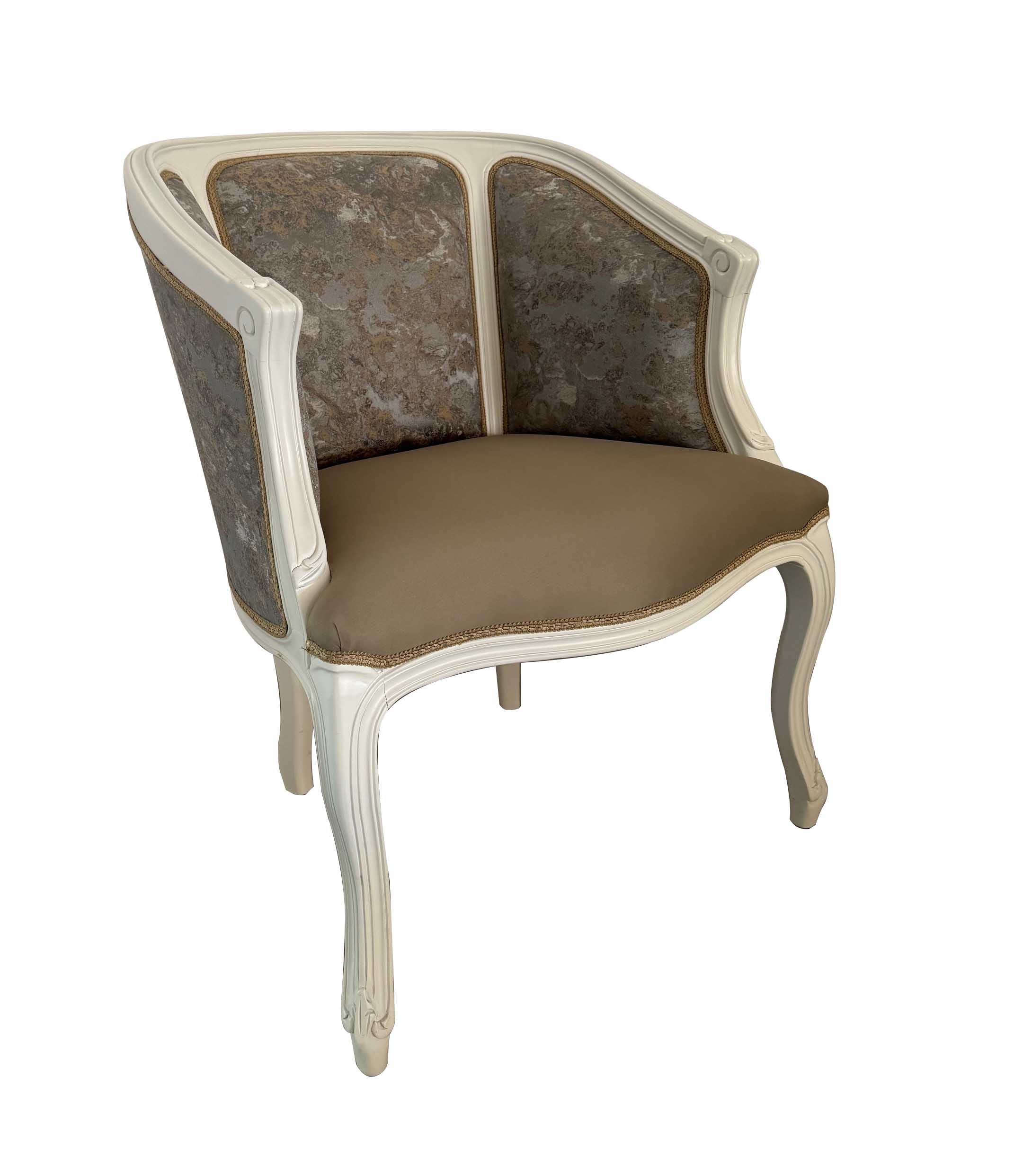 Magnifique fauteuil de cockpit de style classique, avec une belle laque blanche qui met en valeur la structure en hêtre sculpté.
