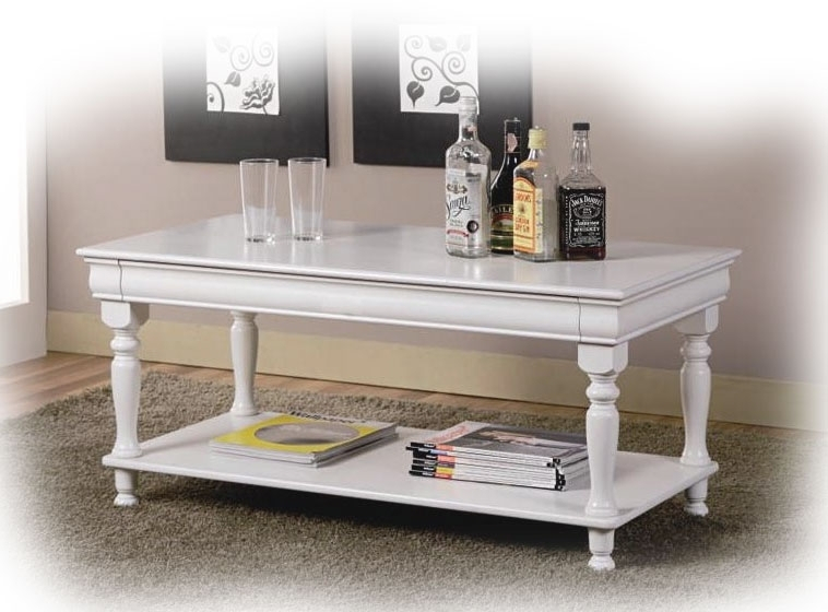 Équipée d'un petit tiroir et d'un plateau inférieur, cette table basse laquée offre un grand confort pour le rangement des magazines ou de tout autre objet. Les pieds réalisés en bois de hêtre tourné élégamment, rendent ce meuble classique et harmonieux.