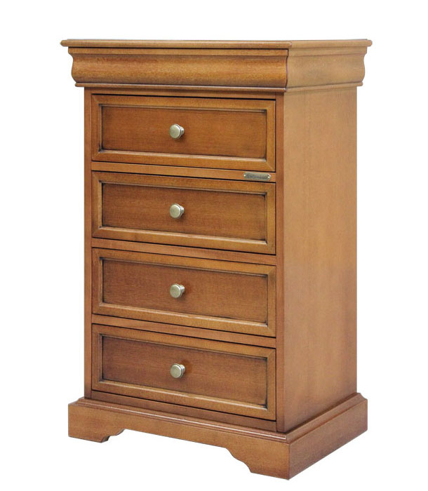Chevet/chiffonnier classique de style Louis Philippe, parfait pour le rangement du salon ou de la chambre à coucher.