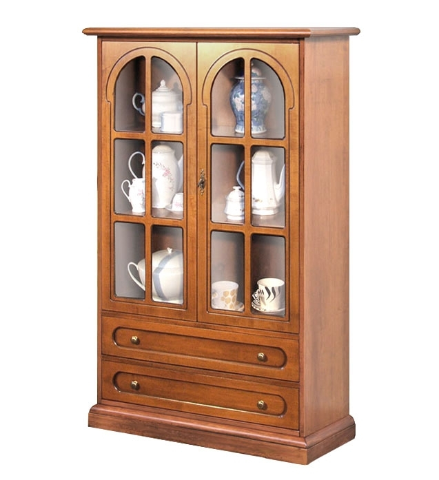 Vitrine basse 2 portes entièrement en bois massif de tulipier et peuplier, robuste et fonctionnelle.