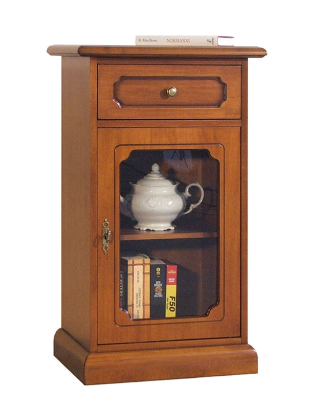 La porte vitrée donne un aspect raffiné au meuble en permettant de l'utiliser en tant que petite vitrine range objets.