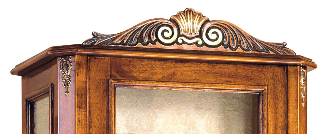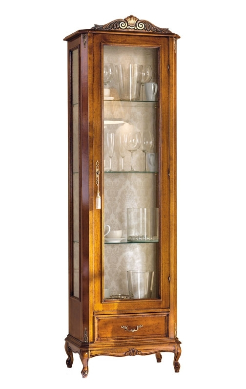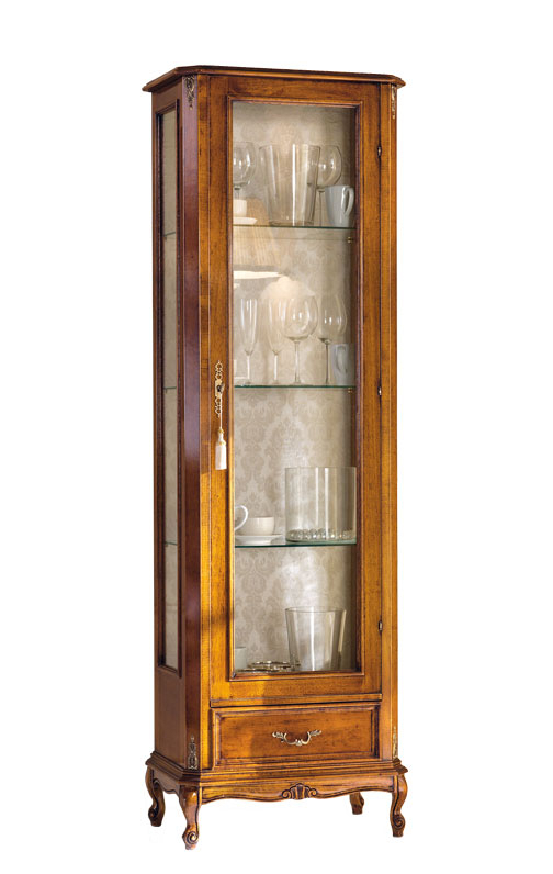 Vitrine haute classique une porte caractérisée par une structure solide et une silhouette raffinée, enrichie par des éléments classiques de qualité.