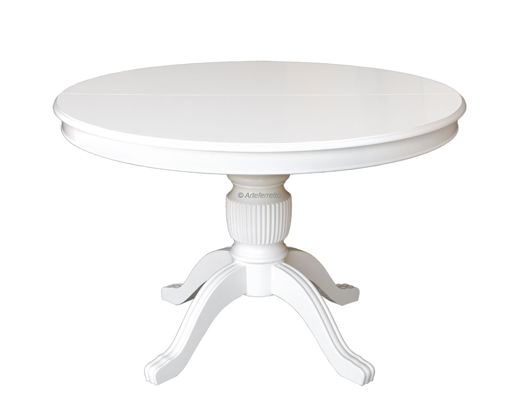 Table à manger ronde 100 cm prolongeable très raffinée caractérisée par un vernissage candide.