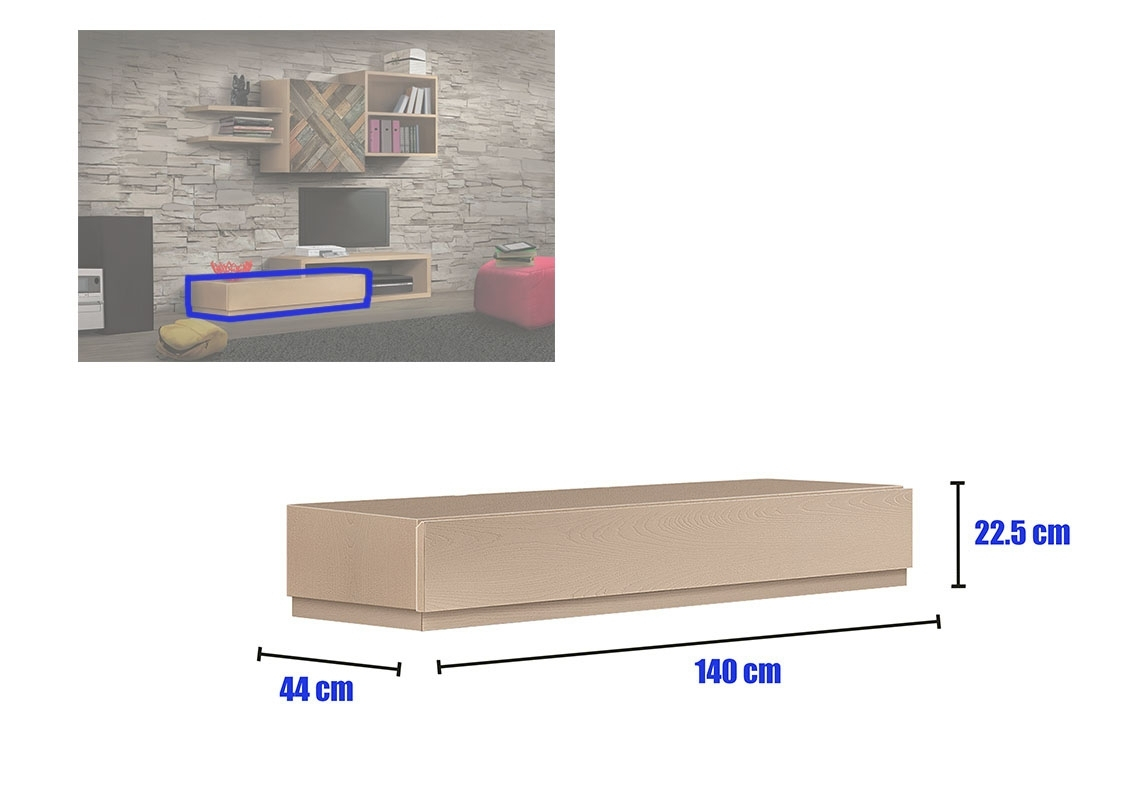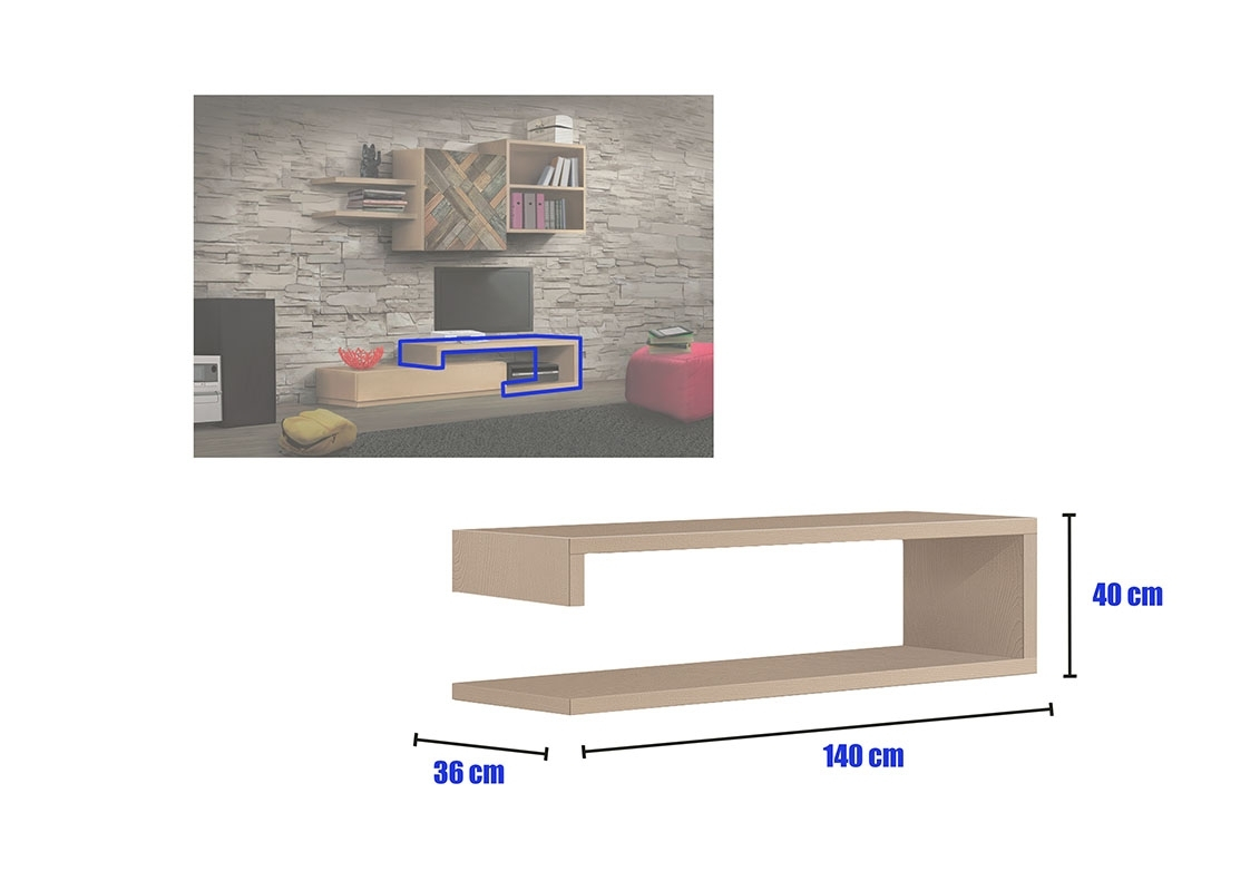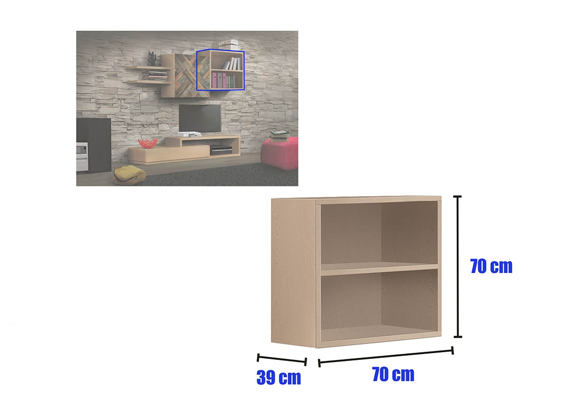 Meuble composition murale finition bois naturel Dubaï