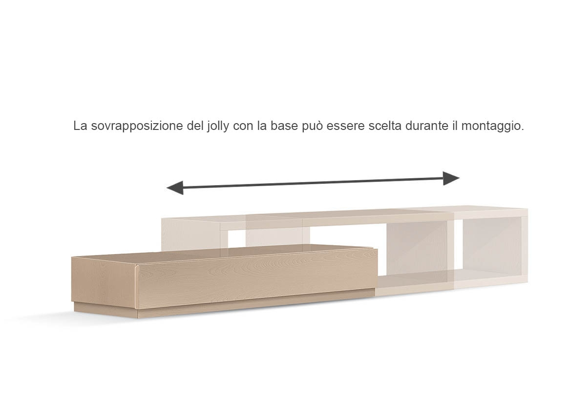 Cet ensemble TV a tout pour vous séduire : vitrines à abattant avec détails en bois, tiroirs avec système de fermeture amortie, étagère avec tiroir secret, grand banc d'appui.