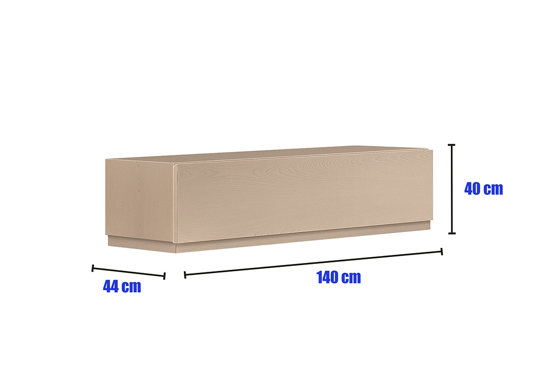 Cet ensemble TV a tout pour vous séduire : vitrines à abattant avec détails en bois, tiroirs avec système de fermeture amortie, étagère avec tiroir secret, grand banc d'appui.