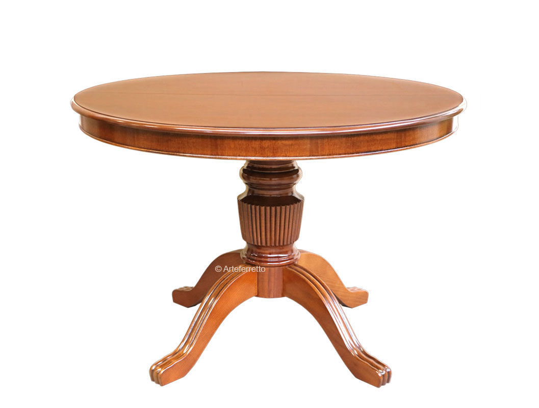 Table à manger ronde 100 cm prolongeable très raffinée caractérisée par un vernissage candide.