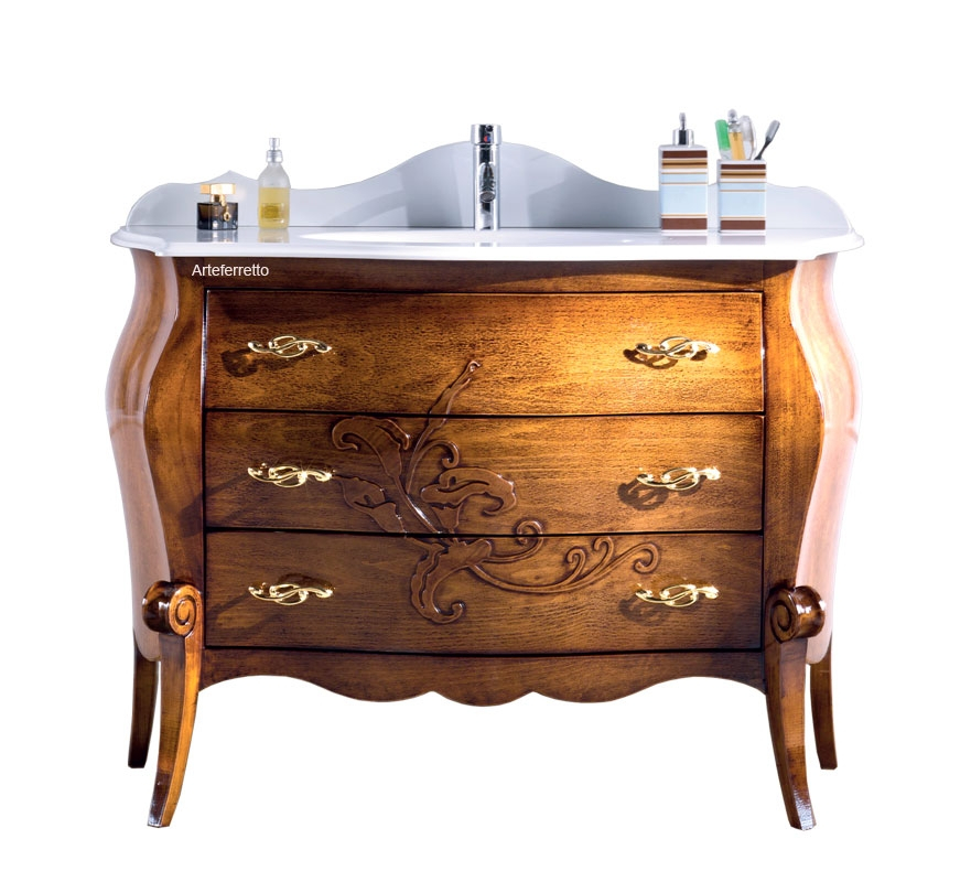 Meuble vasque salle de bain détails argent, élégant et raffiné, finement travaillé et fini dans les moindres détails.Fabriqué exclusivement avec des matériaux haut de gamme, il présente un profil soigneusement façonné.Les renflements sur les côtés et sur la façade soulignent les légères courbures du mobilier, soulignant son importance.Le travail artisanal est particulièrement visible sur les pieds, qui se distinguent par des motifs sculptés.Les détails argent sur les façades des tiroirs, contribuent à donner de la personnalité et de l'harmonie à l'ensemble de la structure.Le charme de ce meuble vasque salle de bain détails argent est renforcé par le parfait mariage entre la peinture blanche et la feuille argent.Pour une salle de beauthé authentique, combinez ce magnifique à un miroir en finition feuille or.Robinet, miroir et accessoires non inclus.En dotation, inclus dans le prix :meuble vasquelavabo en fibre de verreDimensions :largeur 120 cmprofondeur 55 cmhauteur 95 cm