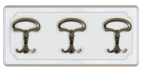 Portemanteau mural laqué blanc équipé de 3 crochets stylisés en métal bronze.