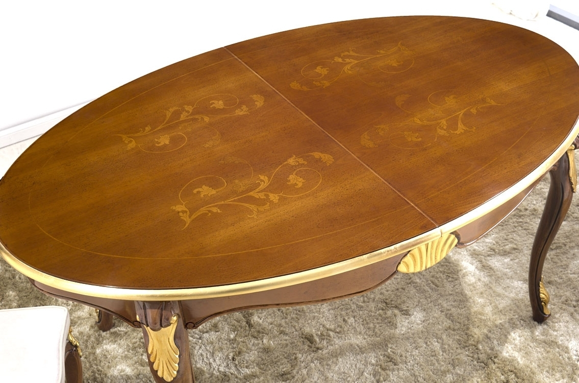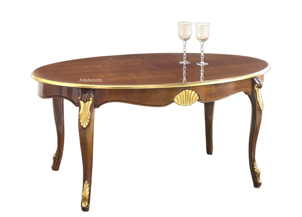 Table à manger ovale modelée extensible avec des pieds sinueux.