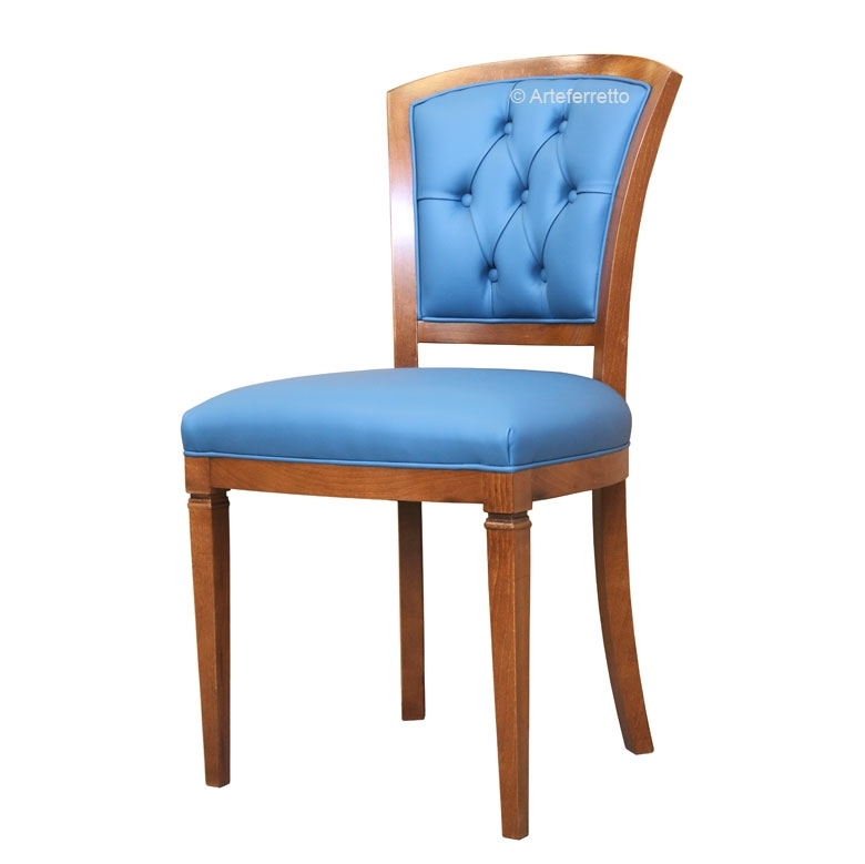 Chaise dossier capitonné, aux lignes épurées et caractérisée par une structure très résistante et solide, issu d'un travail d'assemblage réalisé selon des procédures artisanales hautement fiables.