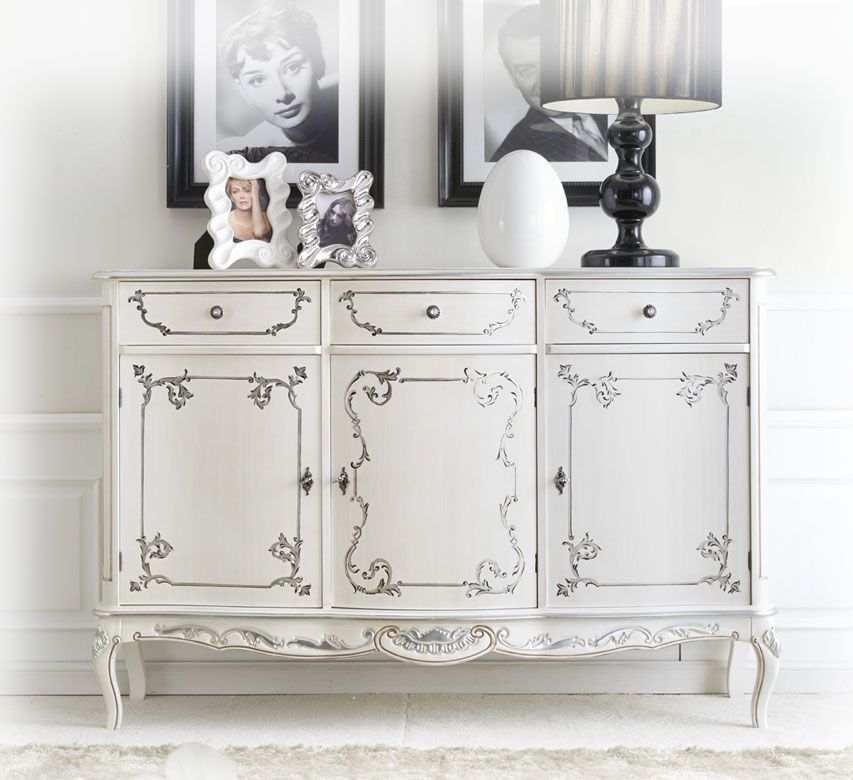 Meuble buffet classique décoré 3 portes et 3 tiroirs très stylisé.