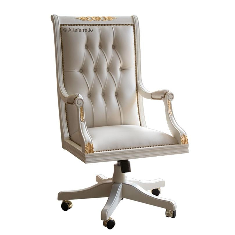 Fauteuil de direction cuir et bois, tournant et soigné dans les moindres détails, fiable et robuste pour se maintenir au fil du temps.