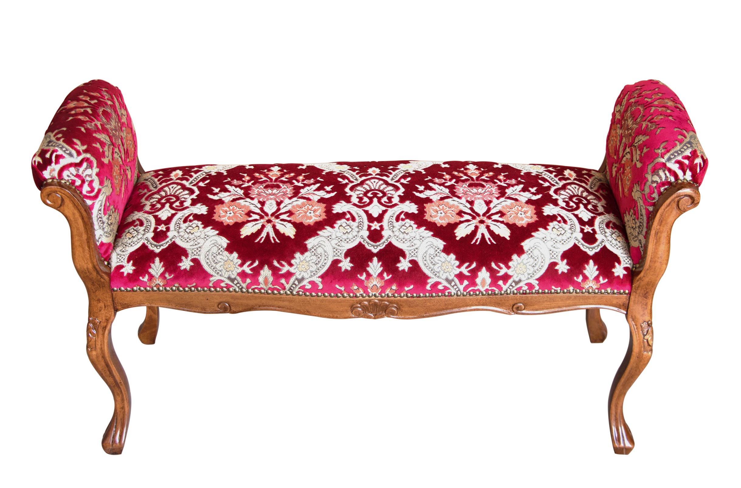 La belle finition (qui met en relief le bois massif de hêtre dont le meuble est réalisé) s'harmonise parfaitement avec le prisé tissu damassé, disponible en plusieurs déclinaisons.