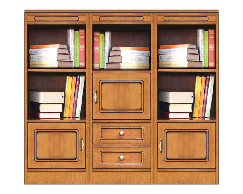 La répartition des espaces crée un effet de haute valeur esthétique. L'alternance des éléments de style, tels que les petites portes et les tiroirs centraux, grâce à un travail soigné sur des surfaces de bois naturel, donne un aspect unique à la structure du meuble.