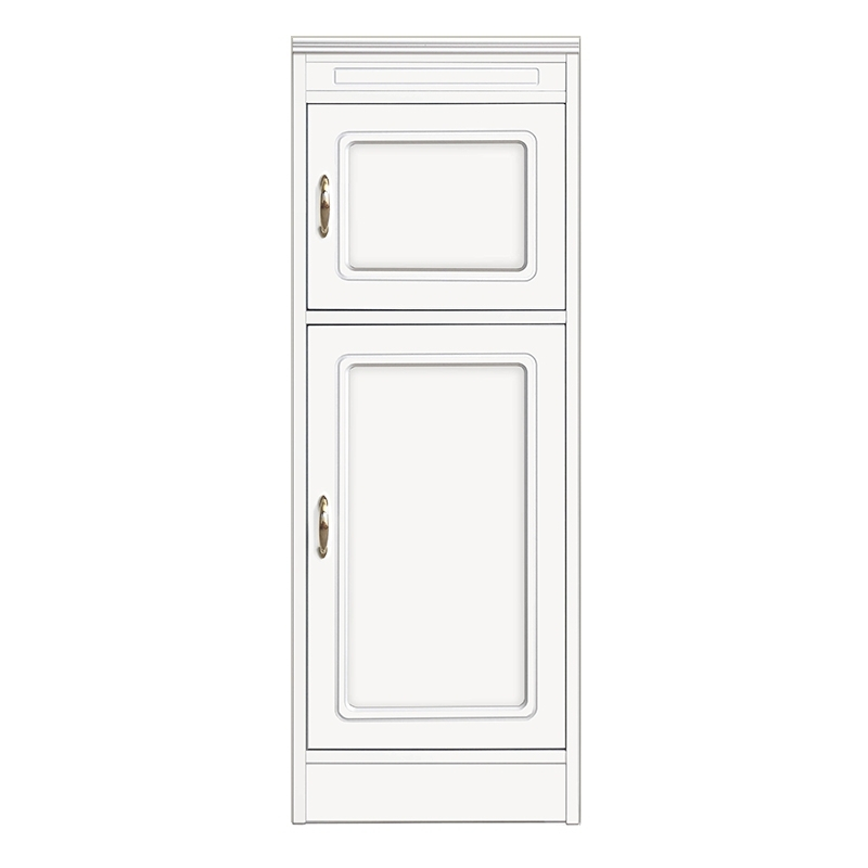 Module meuble buffet multifonctions qui présente 2 espaces renfermés par des portes. L'espace le plus grand est équipé d'une tablette réglable en hauteur.