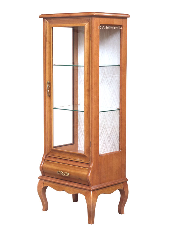 Vitrine basse une porte style classique vénitien, entièremen en bois solide caractérisée par une silhouette sobre et harmonieuse.