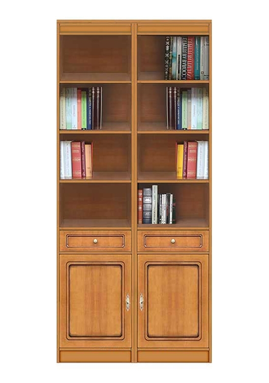 La bibliothèque accueille, dans la partie supérieure fermée par une porte pleine, 3 étagères réglables en hauteur.