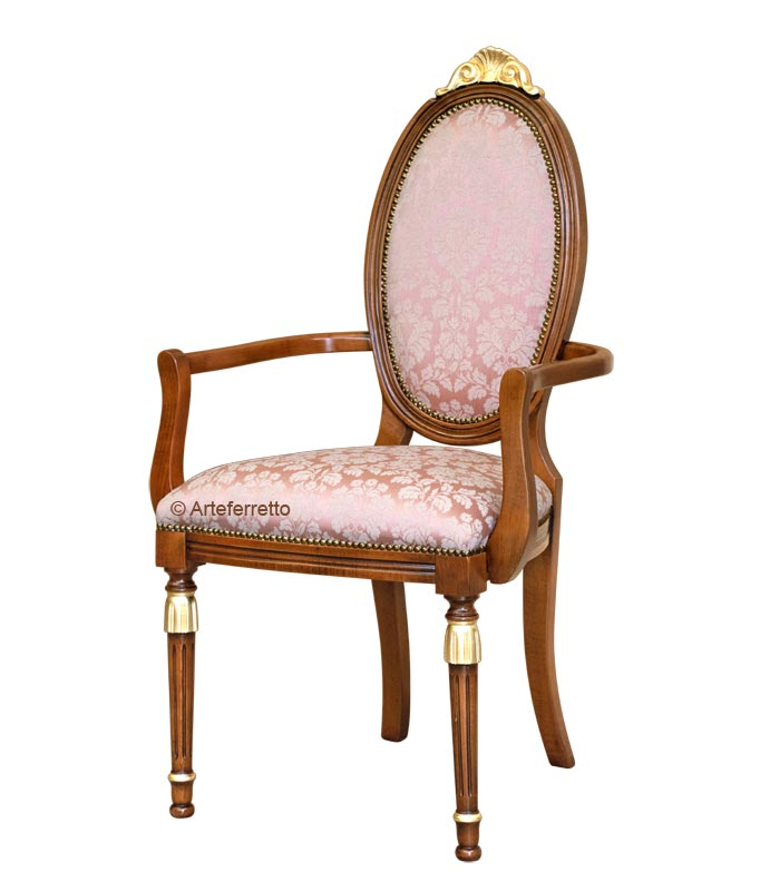 Chaise ovale avec accoudoirs, classique, élégante et élancée.