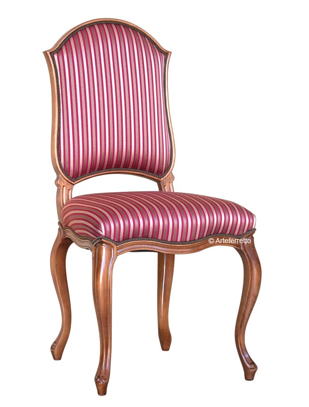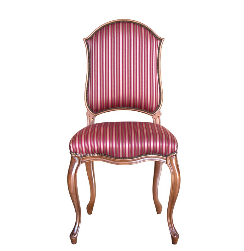 Magnifique chaise rembourrée qui s'inspire du style classique mais qui présente en même temps des éléments de style contemporain, avec une attention particulière à l'harmonie des proportions.