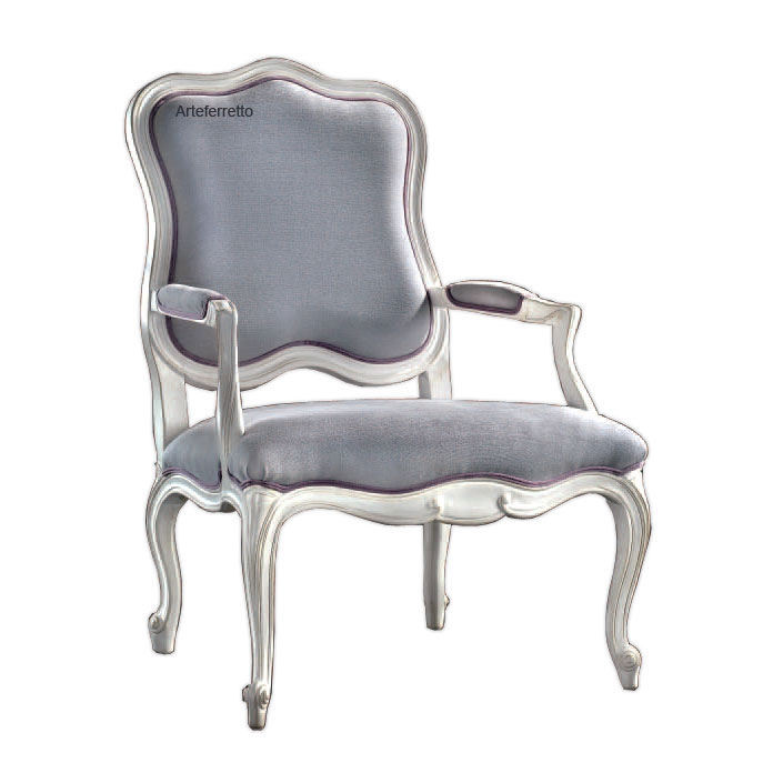 Fauteuil Bergère avec accoudoirs réalisé en hêtre massif. Lignes classiques et formes harmonieuses caractérisent ce fauteuil fruit d'un soigné travail d'artisanat.