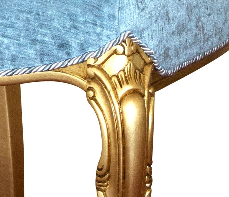Le rembourrage est en parfaite harmonie avec la silhouette sinueuse de la structure dorée. Le tissu très particulier en exalte le raffinement.