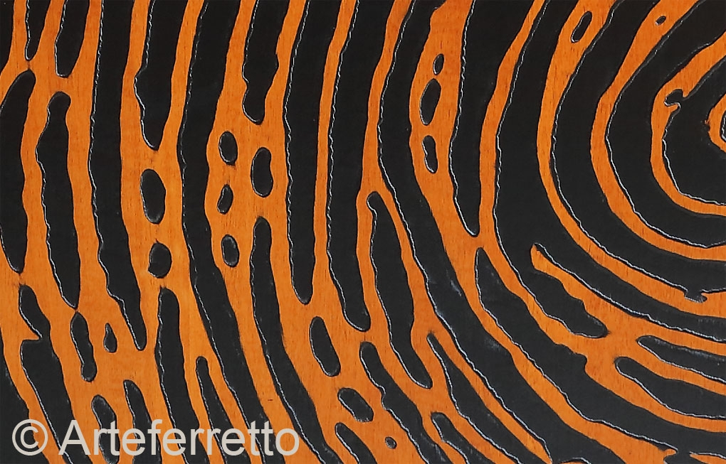 La structure en bois massif de tilleul accueille 3 portes avec motif empreinte vernies rigoureusement à la main, pour un effet vraiment très original.