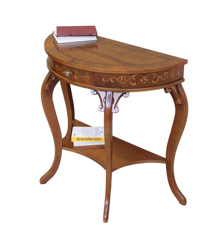 Le top supérieur en forme de demi-lune, est enrichi par un précieux travail de marqueterie réalisé avec des essences de bois de qualité.