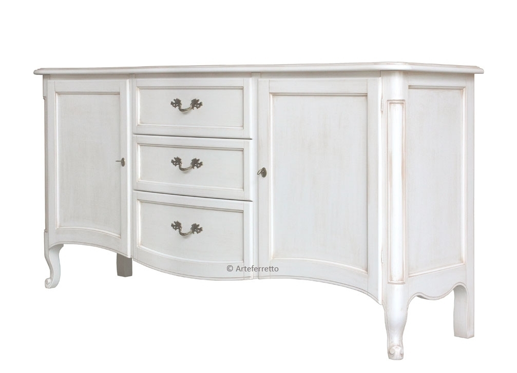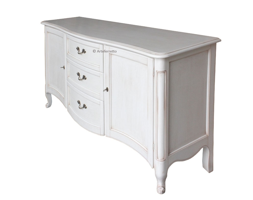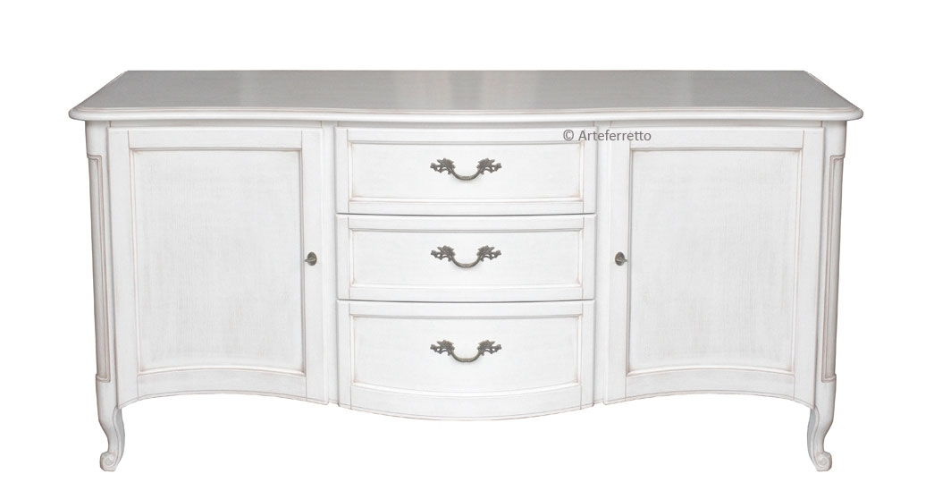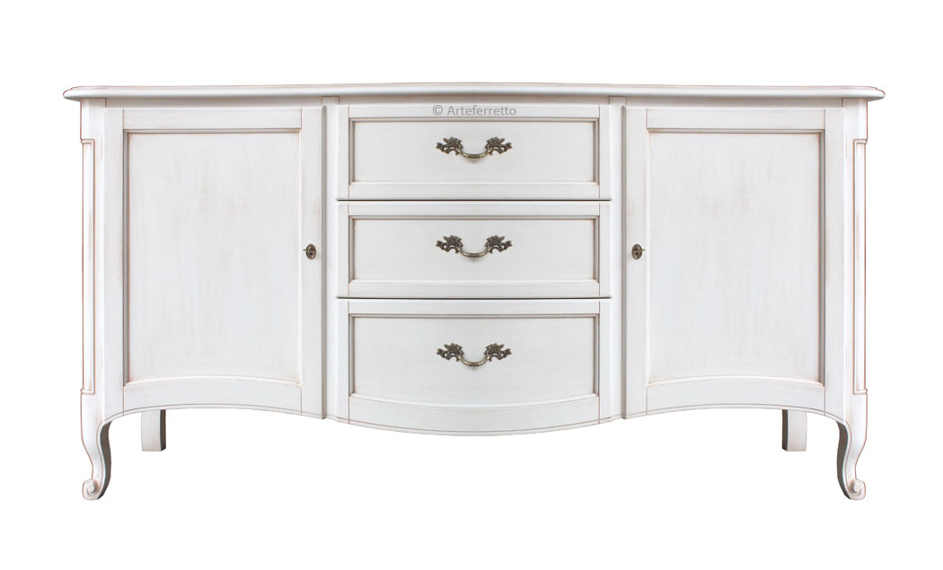 Ce meuble buffet style traditionnel, qui se distingue par une élégance intemporelle, est apprécié pour l'espace donné par les tiroirs centraux et par les grandes niches.