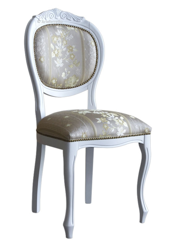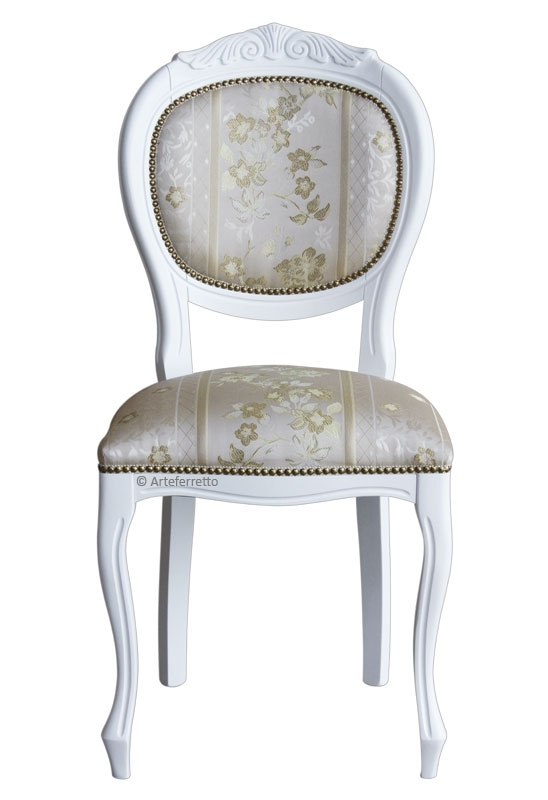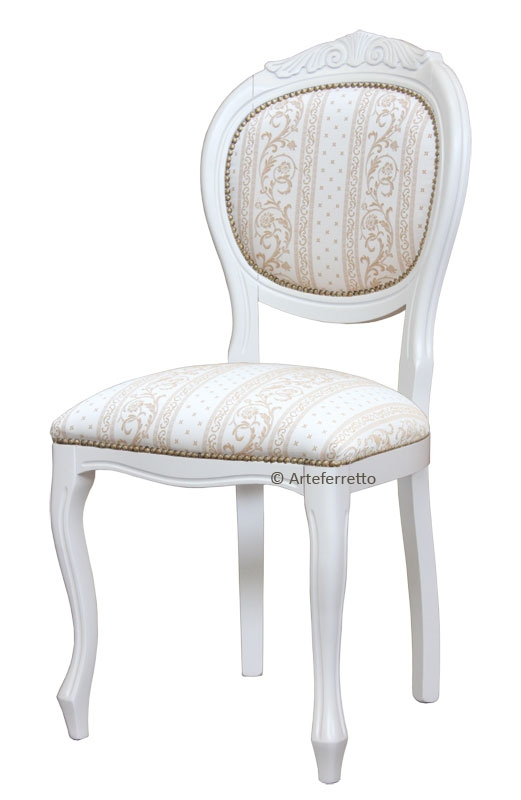 Chaise rembourrée blanche, classique et élégante.