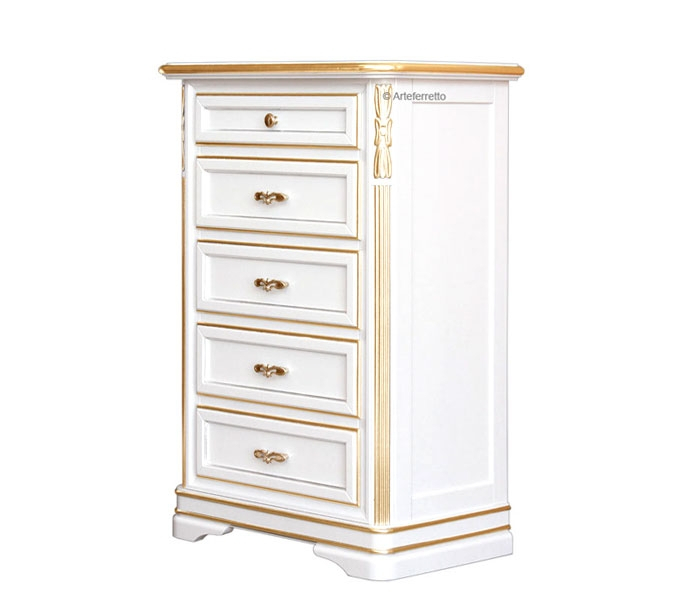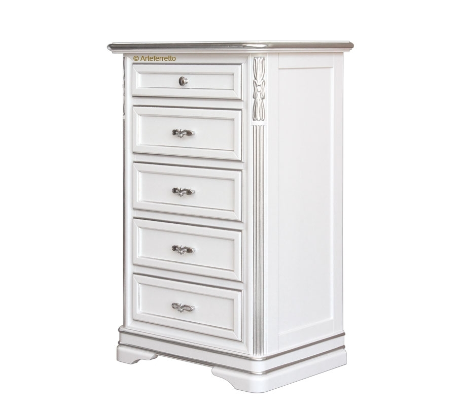 Meuble chiffonnier 5 tiroirs feuille d'or ou d'argent