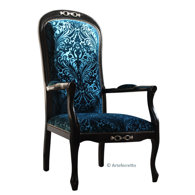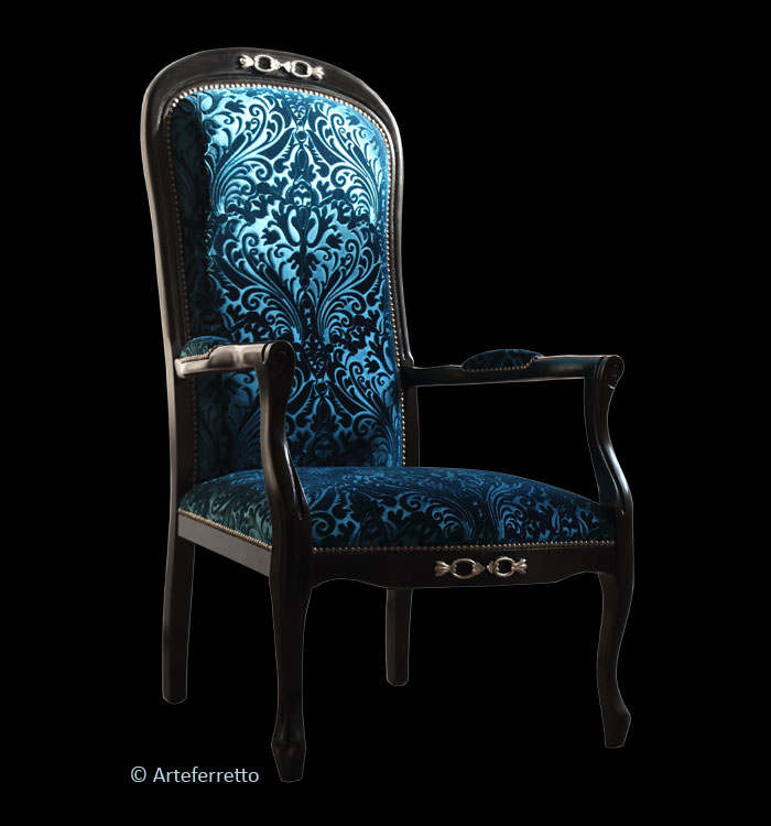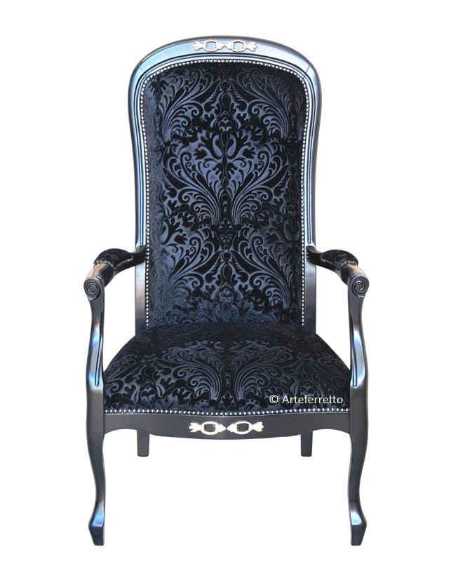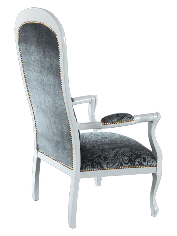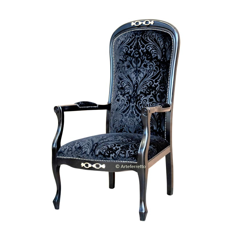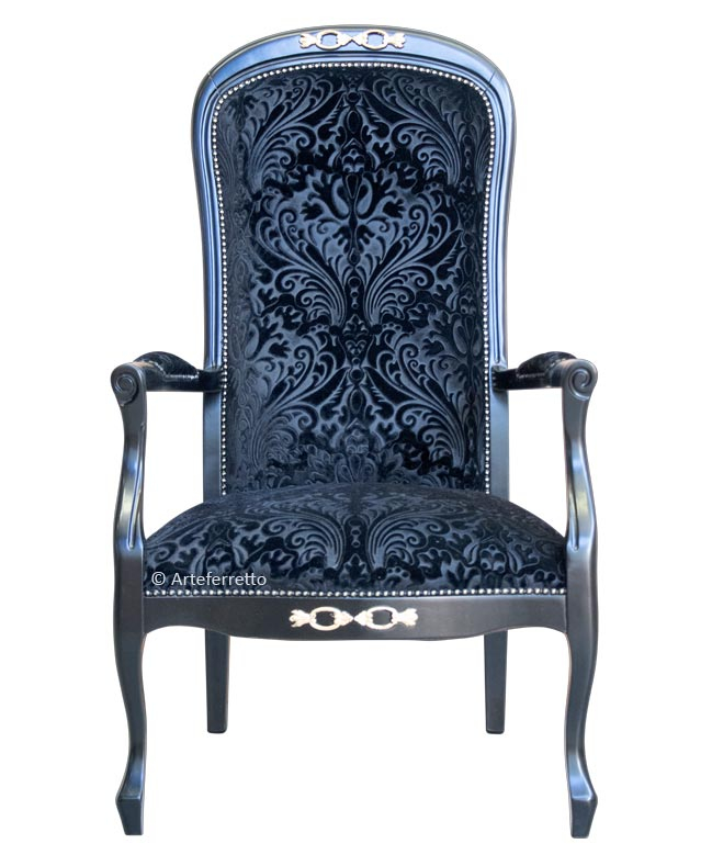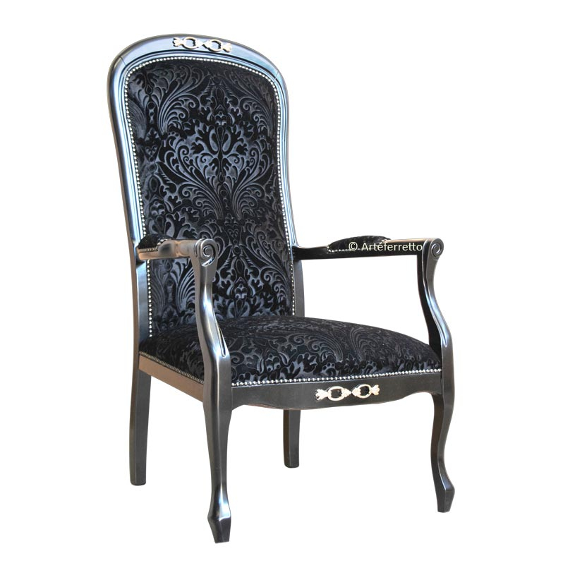 Cette variante, par rapport au modèle "voltaire" standard, présente une assise encore plus confortable et haute (hauteur 52 cm) et les accoudoirs dans les deux cotés latérales sont totalement rembourrés.